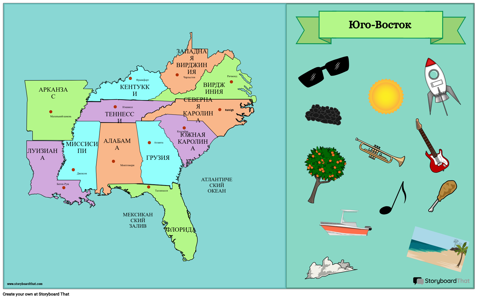 Попросите учащихся наклеить карту юго-восточного региона Соединенных Штатов!