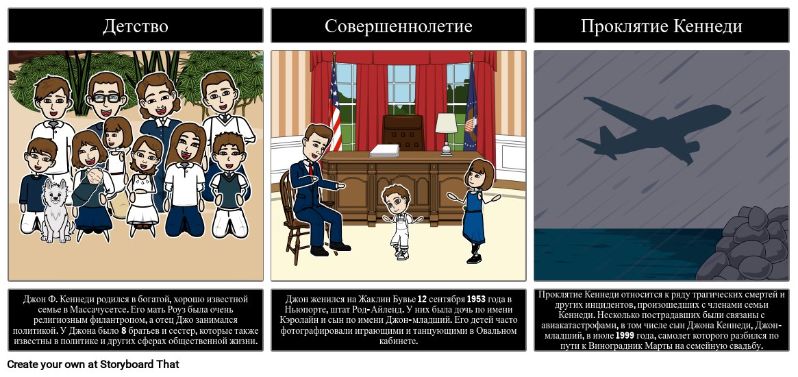 Джон Ф. Кеннеди родился в богатой, хорошо известной семье в Массачусетсе. Его мать Роуз была очень религиозным филантропом, а отец Джо занимался политикой. У Джона было 8 братьев и сестер, которые также известны в политике и других сферах общественной жизни.