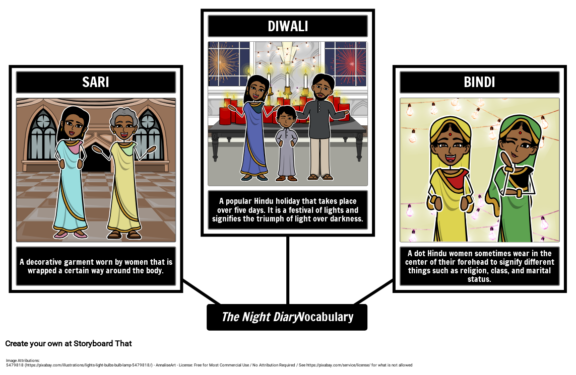 Создайте карту паука, чтобы проиллюстрировать словарный запас из «Ночного дневника» Веры Хиранандани.