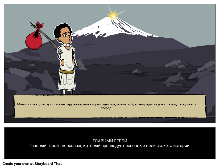 Мальчик знал, что дорога в пещеру на вершине горы будет предательской, но награда сокровища подстегнула его вперед.