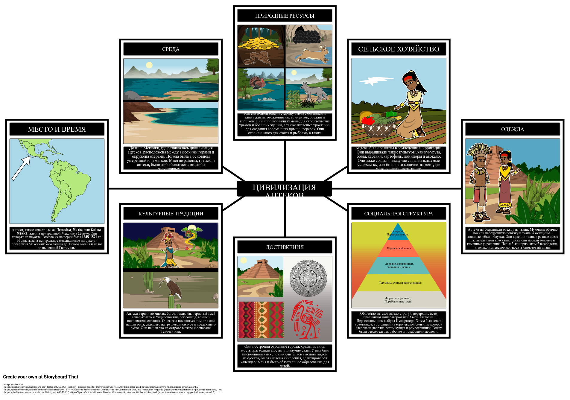 Ацтеки были развиты в земледелии и ирригации. Они выращивали такие культуры, как кукуруза, бобы, кабачки, картофель, помидоры и авокадо. Они даже создали плавучие сады, называемые чинампами, для большего количества мест, где можно выращивать пищу.