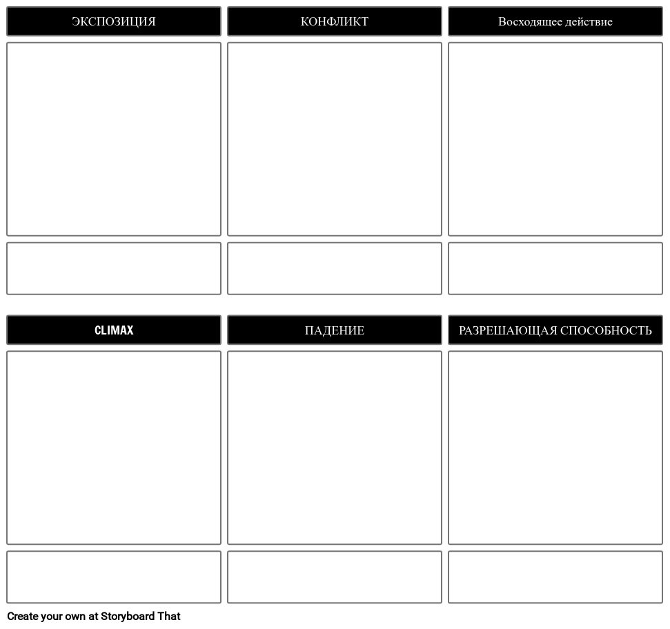Шаблон Диаграммы, в том Числе: Экспозиция, Конфликт, Восходящее Действие, Кульминация, Падающее Действие, Разрешение