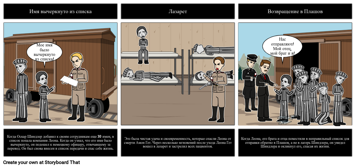 Когда Леона, его брата и отца поместили в неправильный список для отправки обратно в Плашов, а не в лагерь Шиндлера, он увидел Шиндлера и окликнул его, спасая их жизни.