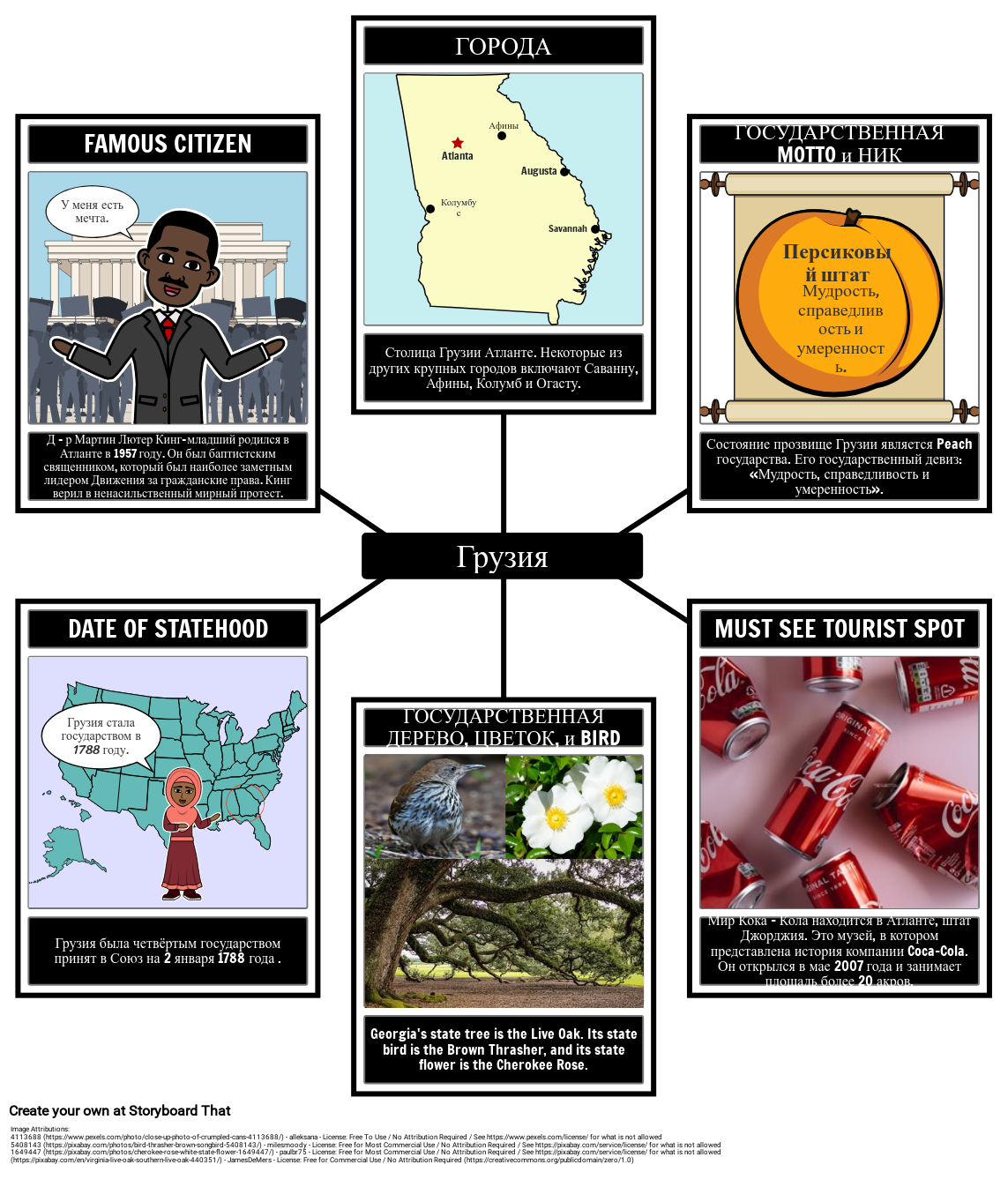 Столица Грузии Атланте. Некоторые из других крупных городов включают Саванну, Афины, Колумб и Огасту.