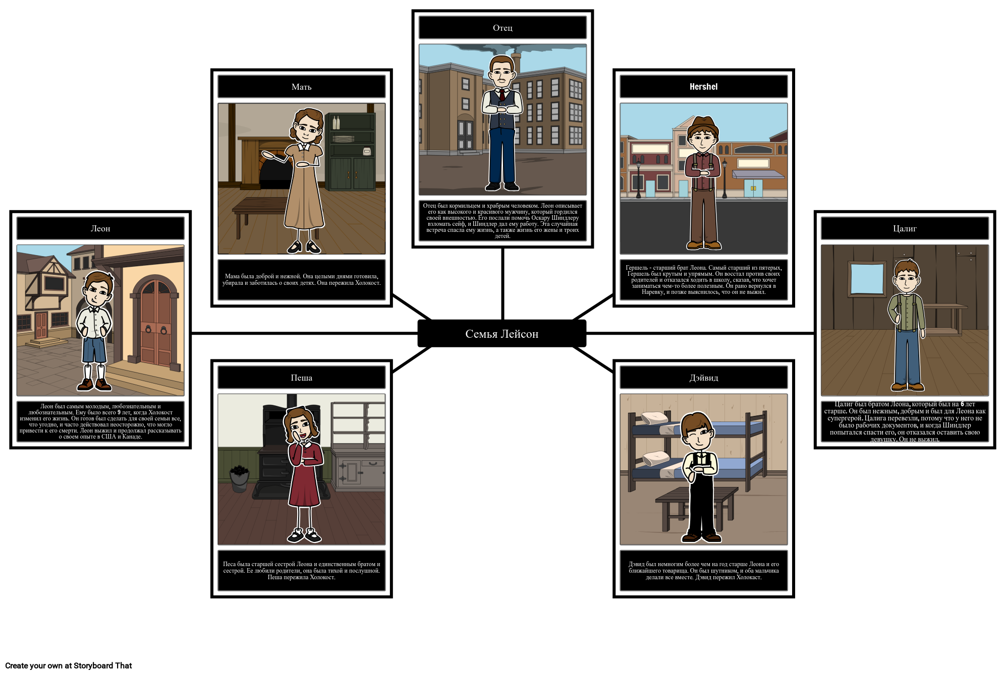 Создайте карту паука, чтобы описать каждого члена семьи Лейсон, как описано в книге «Мальчик в деревянном ящике».