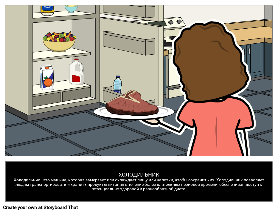 ХОЛОДИЛЬНИКХолодильник - это машина, которая замерзает или охлаждает пищу или напитки, чтобы сохранить их. Холодильник позволяет людям транспортировать и хранить продукты питания в течение более длительных периодов времени, обеспечивая доступ к потенциально здоровой и разнообразной диете.