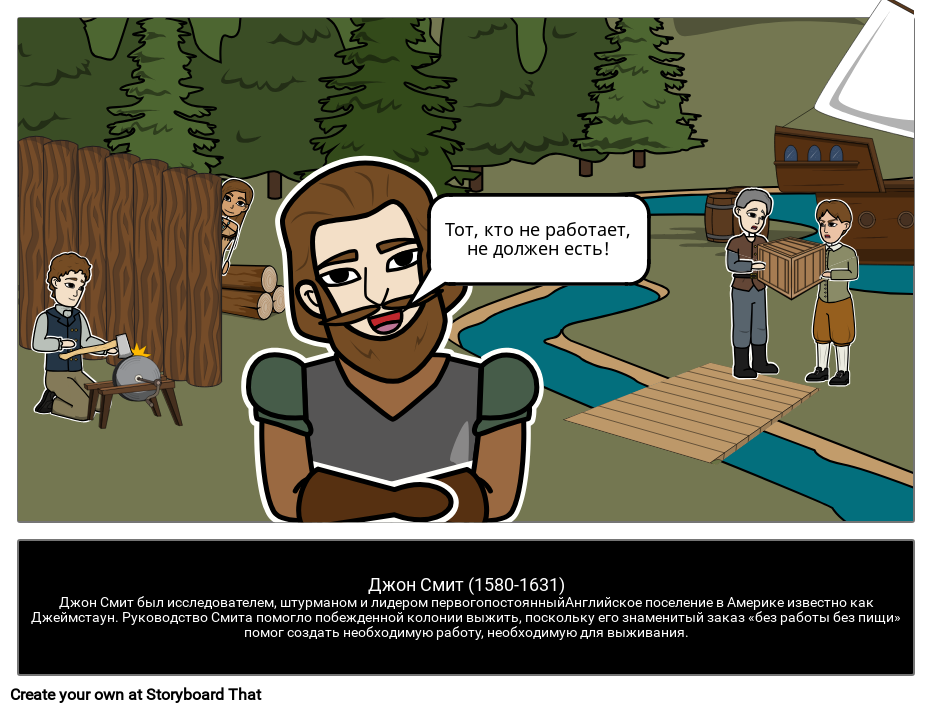 Джон Смит (1580-1631)Джон Смит был исследователем, штурманом и лидером первогопостоянныйАнглийское поселение в Америке известно как Джеймстаун. Руководство Смита помогло побежденной колонии выжить, поскольку его знаменитый заказ «без работы без пищи» помог создать необходимую работу, необходимую для выживания.