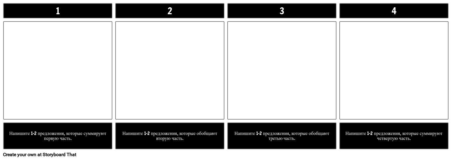Написать резюме в 4 части | Предложите учащимся создать резюме текста из четырех частей (разделы, главы, акты и т. Д.) Добавьте этот шаблон к заданию!