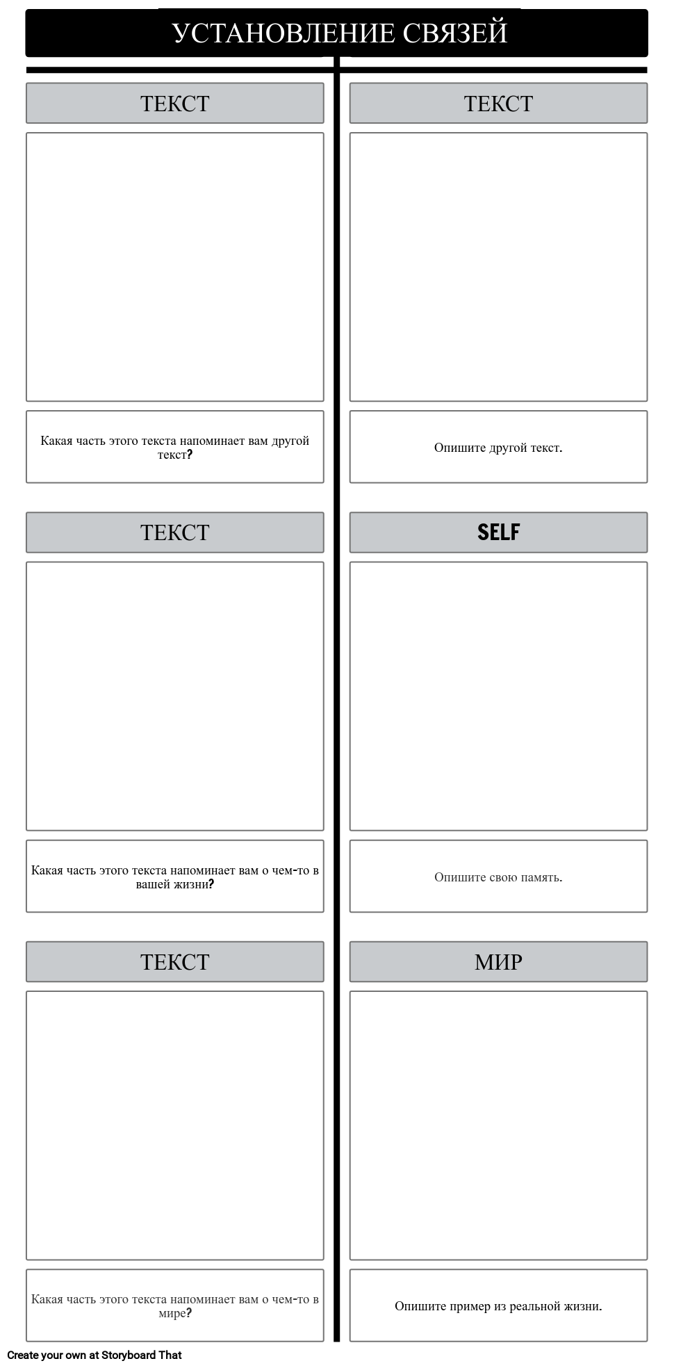 Шаблон T-диаграммы текстовых соединений | Попросите учащихся установить текстовые связи с другой книгой, с самим собой и с миром