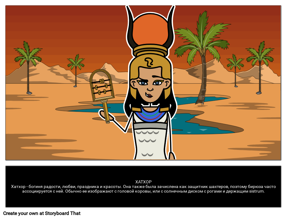 ХАТХОРХатхор - богиня радости, любви, праздника и красоты. Она также была зачислена как защитник шахтеров, поэтому бирюза часто ассоциируется с ней. Обычно ее изображают с головой коровы, или с солнечным диском с рогами и держащим sistrum.
