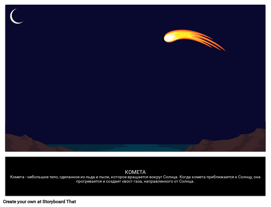 Комета - небольшое тело, сделанное из льда и пыли, которое вращается вокруг Солнца. Когда комета приближается к Солнцу, она прогревается и создает хвост газа, направленного от Солнца.