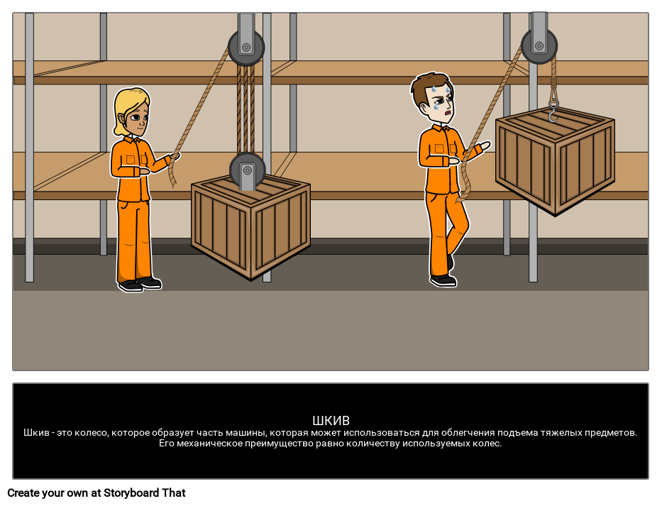 ШКИВШкив - это колесо, которое образует часть машины, которая может использоваться для облегчения подъема тяжелых предметов. Его механическое преимущество равно количеству используемых колес.