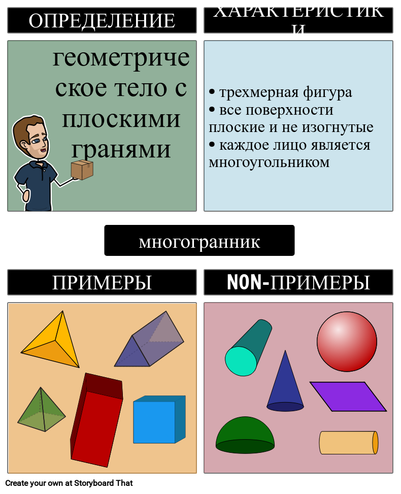 • трехмерная фигура • все поверхности плоские и не изогнутые • каждое лицо является многоугольником