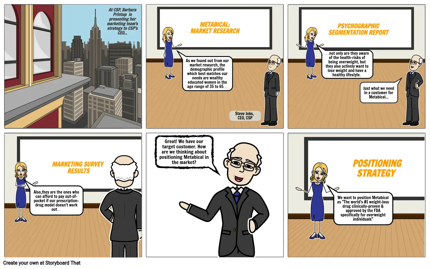At CSP, Barbara Printup is presenting her marketing team’s strategy to CSP’s CEO...