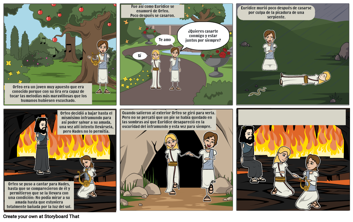 Fue así como Eurídice se enamoró de Orfeo.Poco después se casaron.