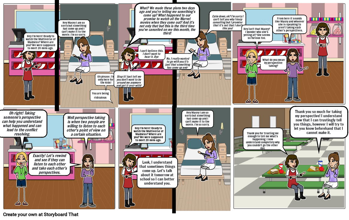 Oh right! Taking someone’s perspective can help you understand what happened and can lead to the conflict resolving.