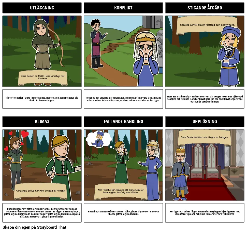 Fem akter och dramatisk struktur. exposition, stigande action, klimax, fallande action & denouement As You Like It Plot Diagram