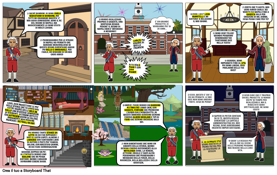 1) VORREI REALIZZARE PROPRIO A CASERTA, UNA SONTUOSA REGGIA PERCHE' IL REGNO DI NAPOLI NON E' INFERIORE A NESSUNO!!