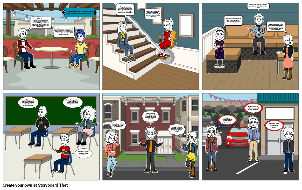 Person2: you got that right so chill out dude don't yell at me for not voting the same presidential as you