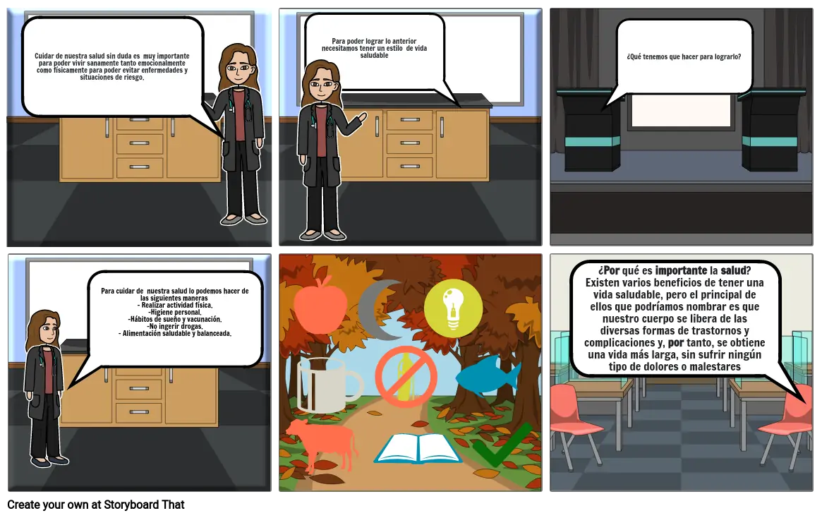 Para cuidar de nuestra salud lo podemos hacer de las siguientes maneras - Realizar actividad física.-Higiene personal.-Hábitos de sueño y vacunación.-No ingerir drogas.- Alimentación saludable y balanceada.