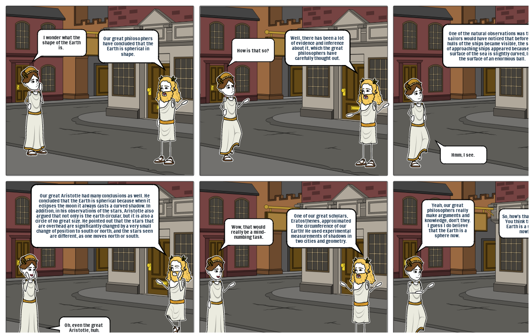 Our great Aristotle had many conclusions as well. He concluded that the Earth is spherical because when it eclipses the moon it always casts a curved shadow. In addition, in his observations of the stars, Aristotle also argued that not only is the earth circular, but it is also a circle of no great size. He pointed out that the stars that are overhead are significantly changed by a very small change of position to south or north, and the stars seen are different, as one moves north or south.
