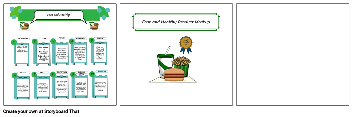 Open our "Fast and Healthy" restaurant and turn it into franchise.