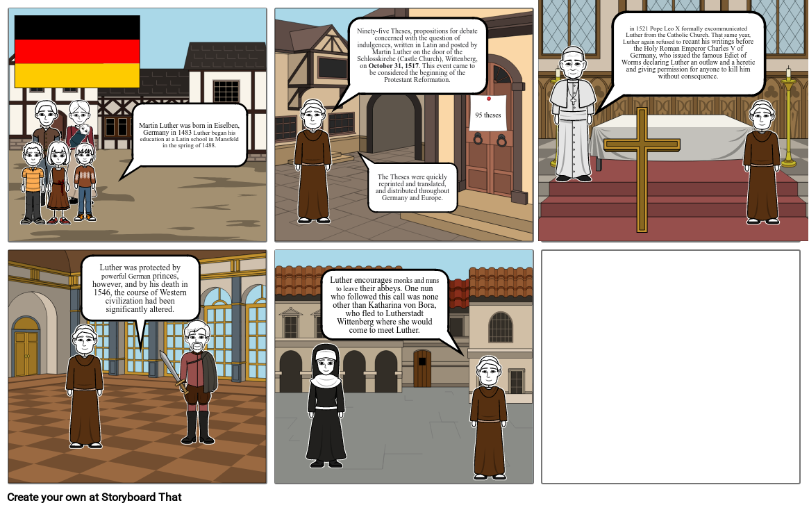Luther encourages monks and nuns to leave their abbeys. One nun who followed this call was none other than Katharina von Bora, who fled to Lutherstadt Wittenberg where she would come to meet Luther.