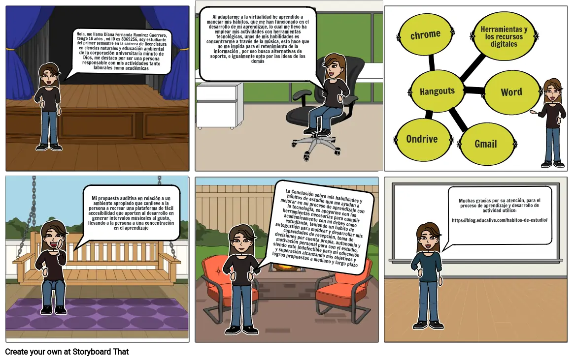 Al adaptarme a la virtualidad he aprendido a manejar mis hábitos, que me han funcionado en el desarrollo de mi aprendizaje, lo cual me llevo ha emplear mis actividades con herramientas tecnológicas, unas de mis habilidades es concentrarme a través de la música, esto hace que no me impida para el retenimiento de la información , por eso busco alternativas de soporte, e igualmente opto por las ideas de los demás