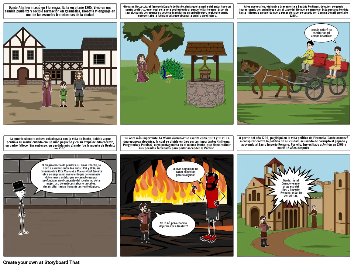 Una historieta creada en base a la vida y trayectoria de Dante Alighieri.