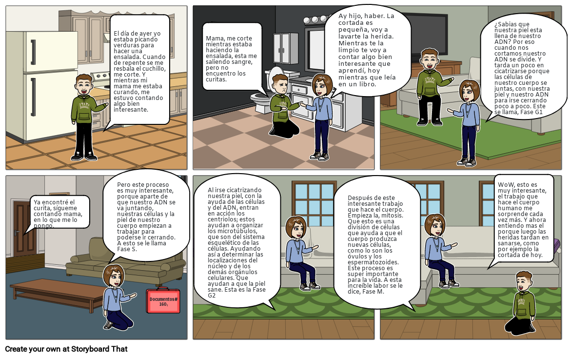 ¿Sabias que nuestra piel esta llena de nuestro ADN? Por eso cuando nos cortamos nuestro ADN se divide. Y tarda un poco en cicatrizarse porque las células de nuestro cuerpo se juntas, con nuestra piel y nuestro ADN para irse cerrando poco a poco. Este se llama, Fase G1