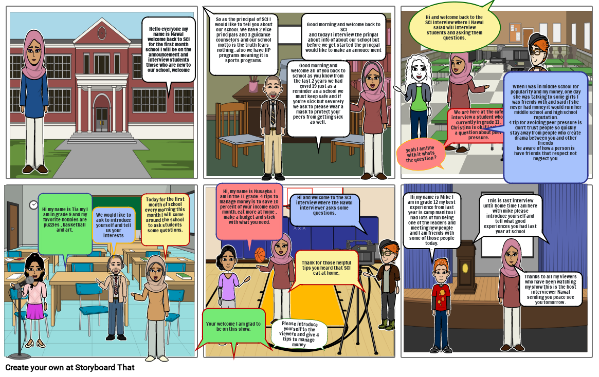 Hello everyone my name is Nawal welcome back to SCI for the first month school I will be on the announcement and interview students those who are new to our school, welcome
