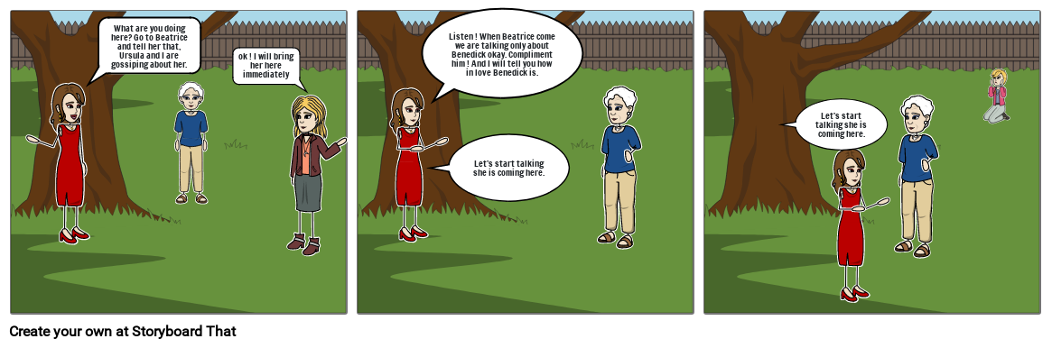 What are you doing here? Go to Beatrice and tell her that, Ursula and I are gossiping about her.