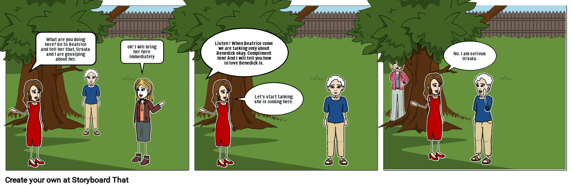Listen ! When Beatrice comewe are talking only aboutBenedick okay. Complimenthim! And I will tell you howin love Benedick is.
