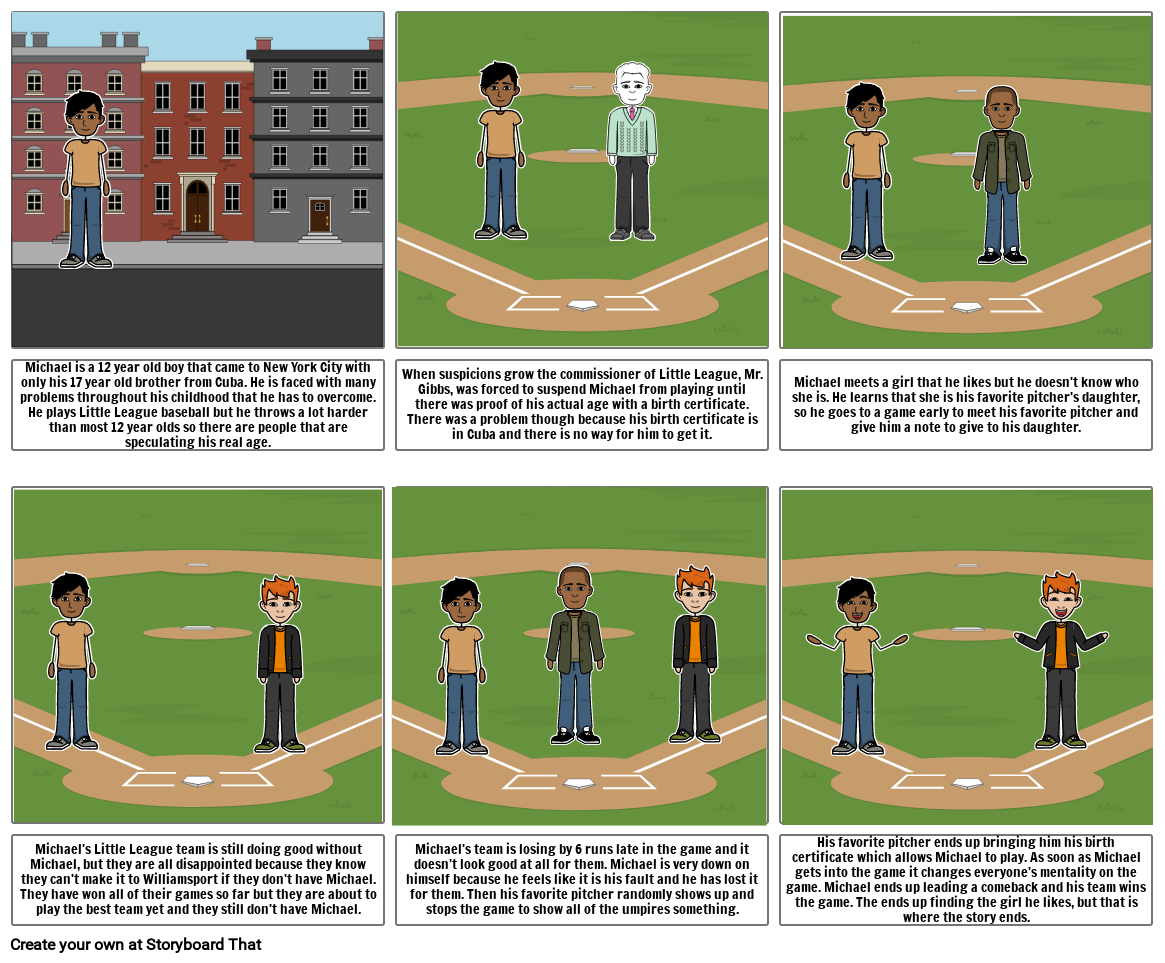Michael is a 12 year old boy that came to New York City with only his 17 year old brother from Cuba. He is faced with many problems throughout his childhood that he has to overcome. He plays Little League baseball but he throws a lot harder than most 12 year olds so there are people that are speculating his real age.