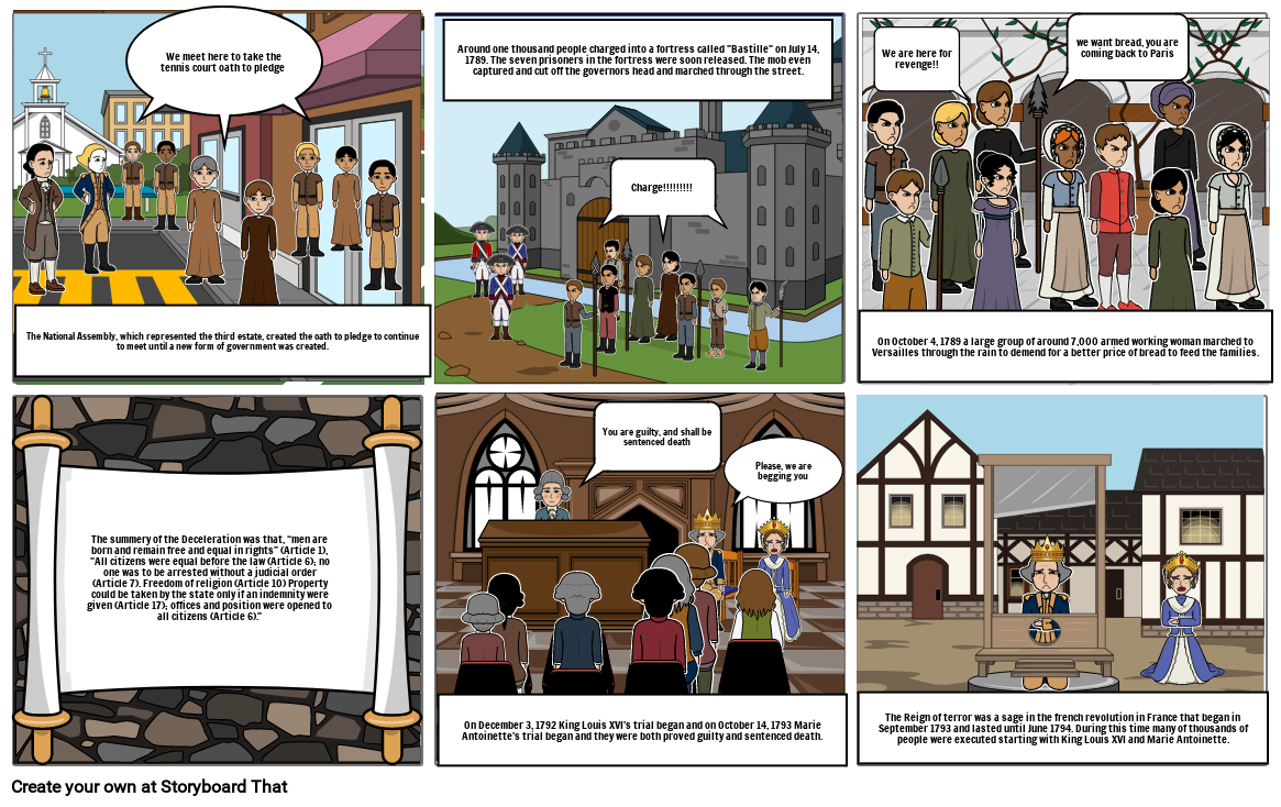 On December 3, 1792 King Louis XVI's trial began and on October 14, 1793 Marie Antoinette's trial began and they were both proved guilty and sentenced death.
