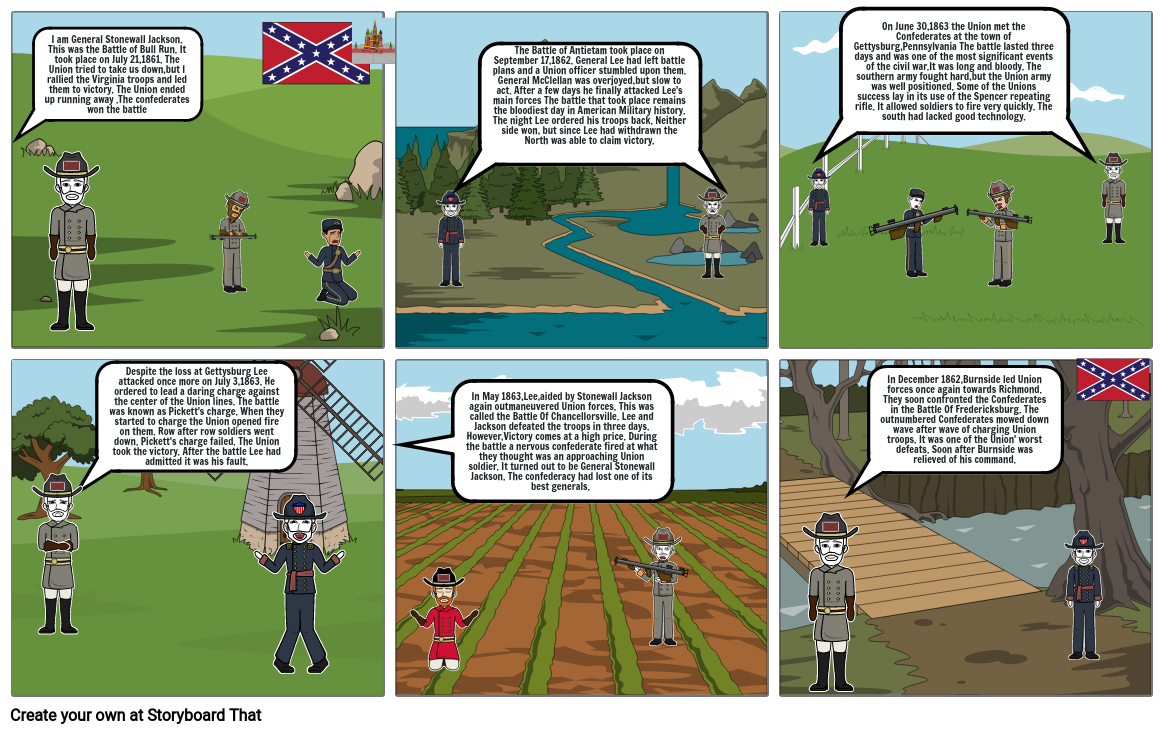 I am General Stonewall Jackson. This was the Battle of Bull Run. It took place on July 21,1861. The Union tried to take us down,but I rallied the Virginia troops and led them to victory. The Union ended up running away .The confederates won the battle