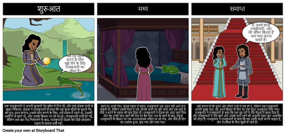छात्र शुरुआत, मध्य और अंत पर प्रकाश डालते हुए द फ्रॉग प्रिंस का सारांश बना सकते हैं!