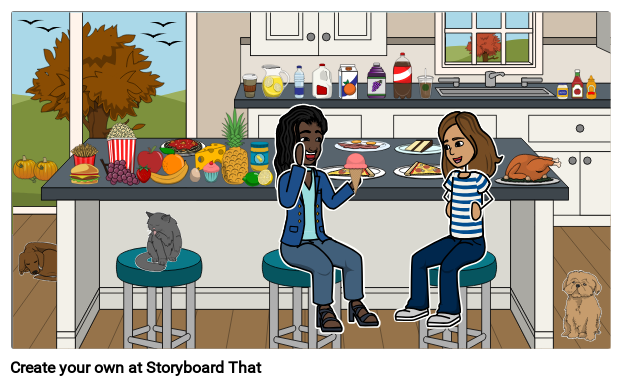 स्पीच थेरेपी के लिए चित्र दृश्य जिसमें विभिन्न खाद्य पदार्थ शामिल हैं। शब्दावली अभ्यास के लिए बहुत बढ़िया!