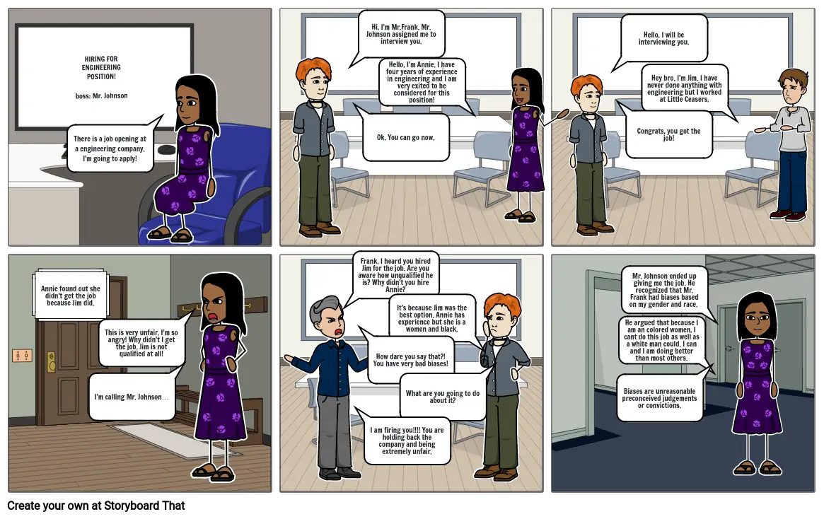 Mr. Johnson ended up giving me the job. He recognized that Mr. Frank had biases based on my gender and race.