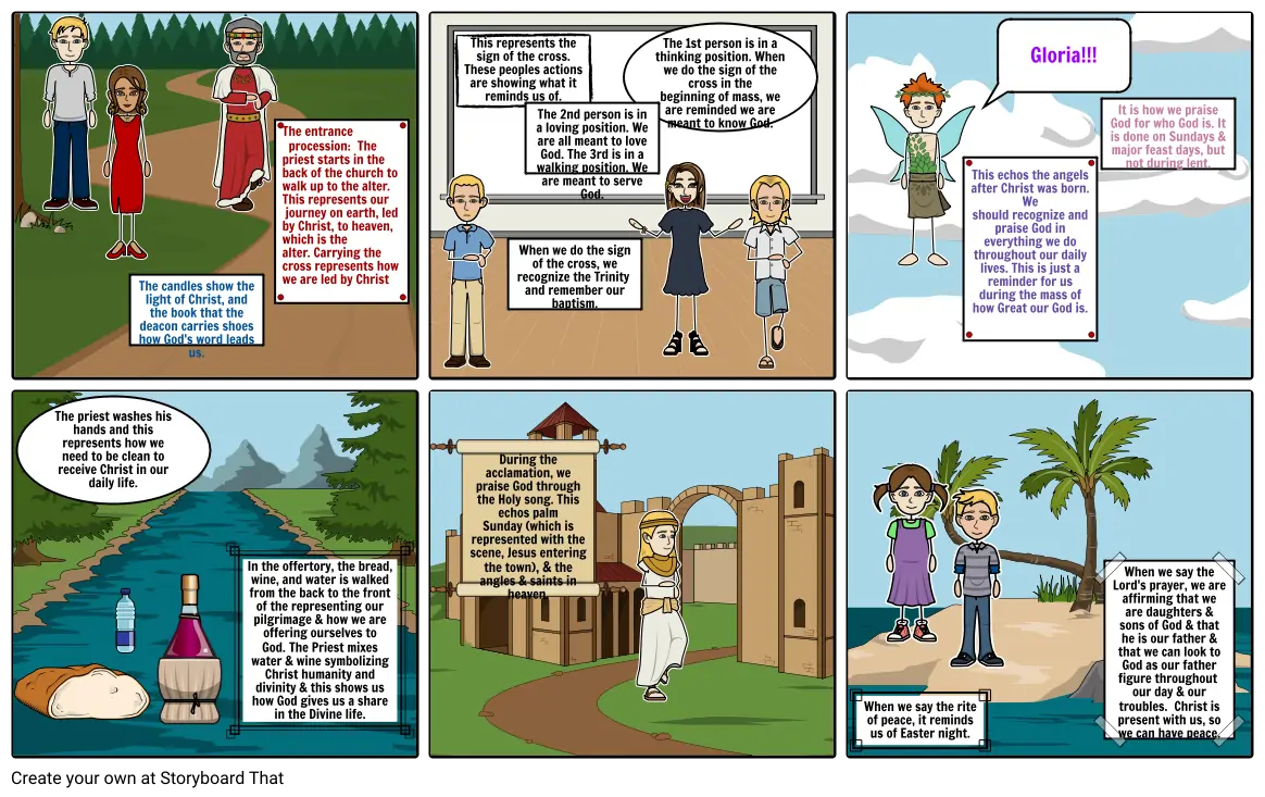 In the offertory, the bread, wine, and water is walked from the back to the front of the representing our pilgrimage & how we are offering ourselves to God. The Priest mixes water & wine symbolizing Christ humanity and divinity & this shows us how God gives us a share in the Divine life.