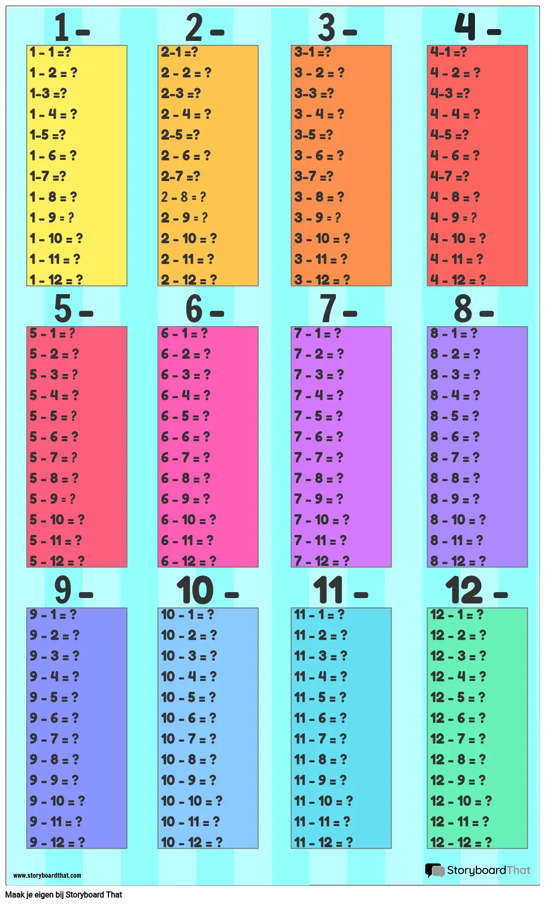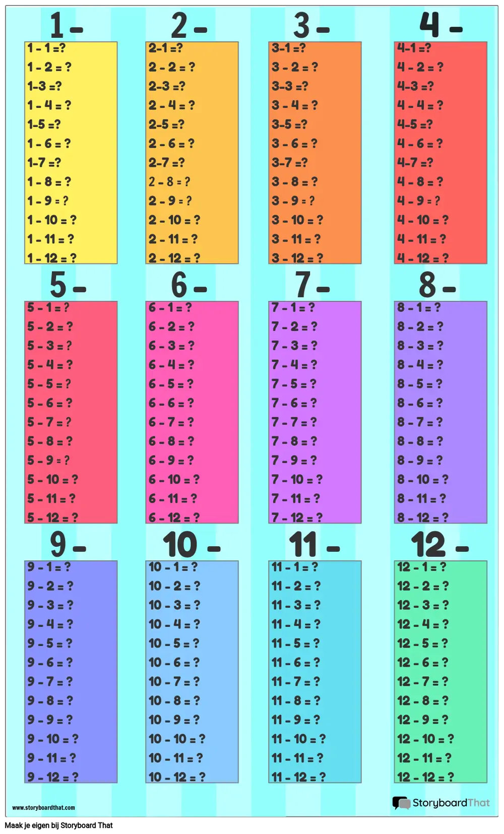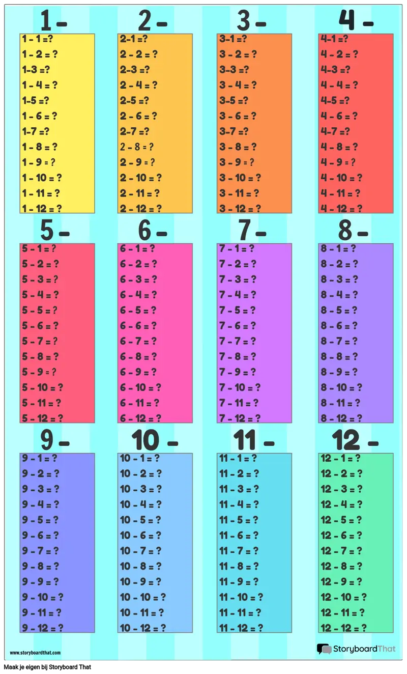 Maak aangepaste aftrektafelposters voor je klaslokaal