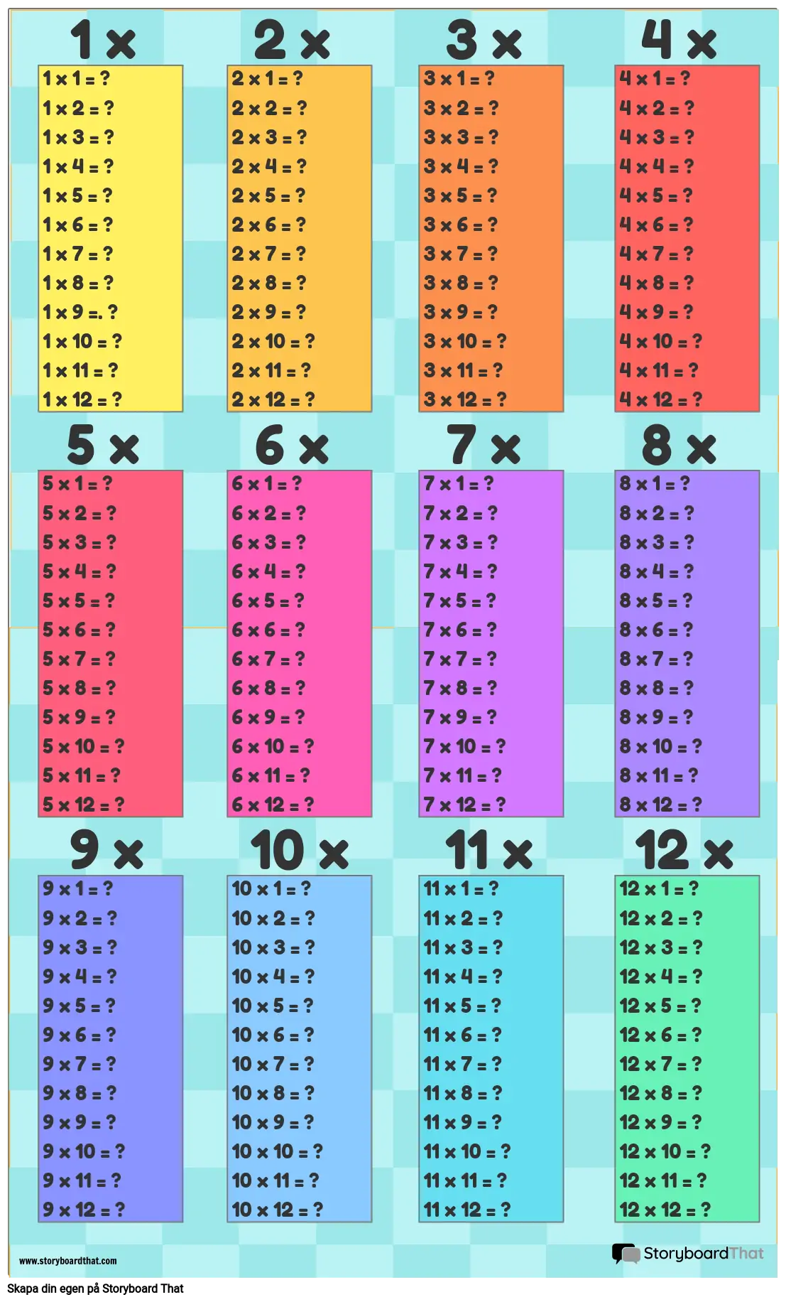 Gör anpassade multiplikationstabellaffischer för ditt klassrum