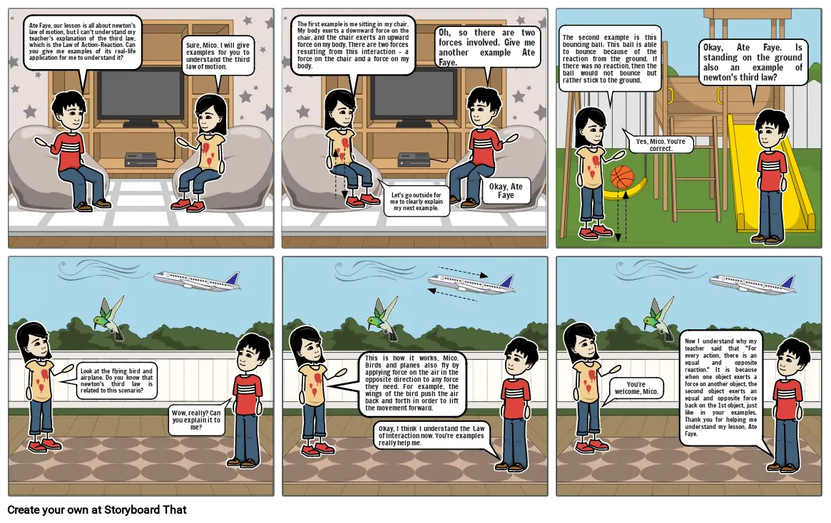 Now I understand why my teacher said that For every action, there is an equal and opposite reaction. It is because when one object exerts a force on another object, the second object exerts an equal and opposite force back on the 1st object, just like in your examples. Thank you for helping me understand my lesson, Ate Faye.