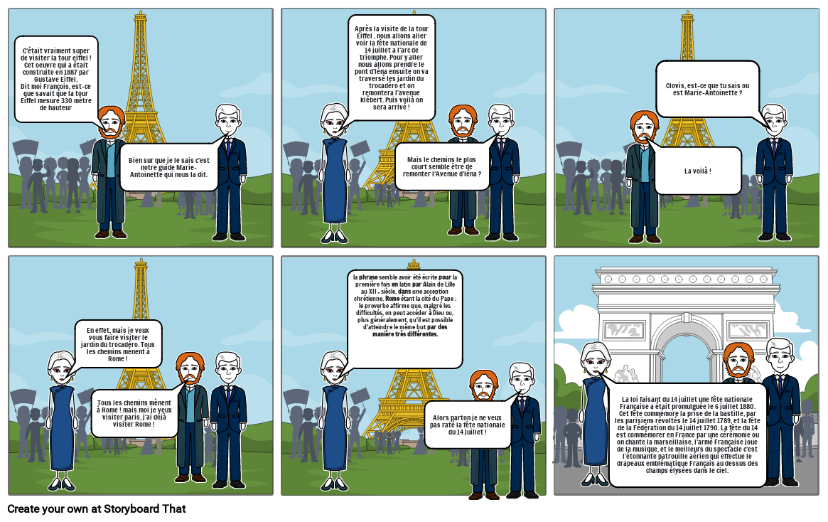 Après la visite de la tour Eiffel , nous allons aller voir la fête nationale de 14 juillet a l'arc de triomphe. Pour y aller nous allons prendre le pont d'léna ensuite on va traversé les jardin du trocadéro et on remontera l'avenue klébert. Puis voilà on sera arrivé !