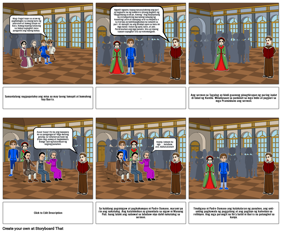 Ngunit ngayon, kapag nasasalubong ang pari ay nagaalis na ng sumbrero bilang pagbati ng “Magandang araw po, Among.” Ang mayayabang na estudyanteng marunong lamamg ng kaunting Latin at nakapag-aral sa Maynila o sa Europa ay nakikipagkamay na lamanh sa pari. At malapit na ang dilubyo ayon sa hula nh mga banal. Uulan ng apoy, bato, at abo. Parurusahan ang mga panalo. Sila ay inyong layuan sapagkat sila ay eskomulgado.