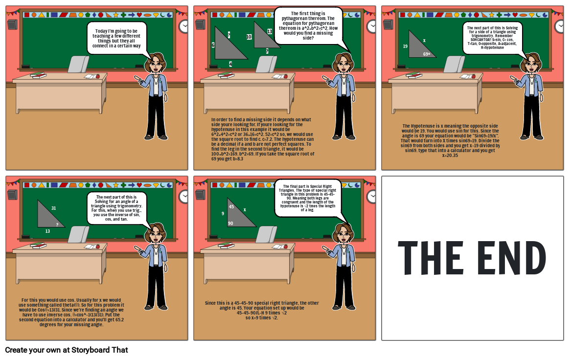 The first thing is pythagorean thereom. The equation for pythagorean thereom is a^2+b^2=c^2. How would you find a missing side?