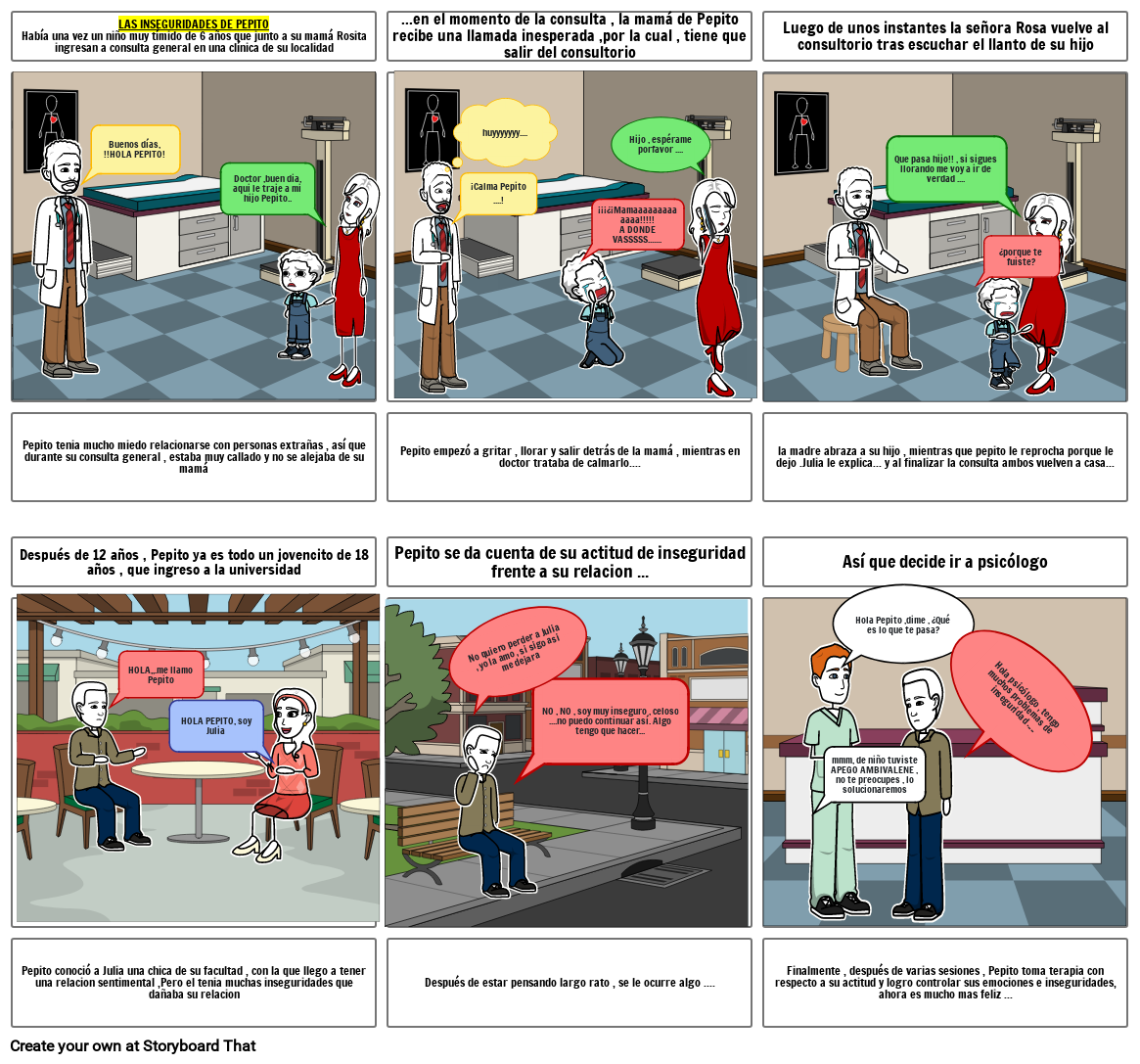 LAS INSEGURIDADES DE PEPITOHabíauna vez un niño muy tímido de 6 años que junto a su mamá Rosita ingresan a consulta general en una clínica de su localidad