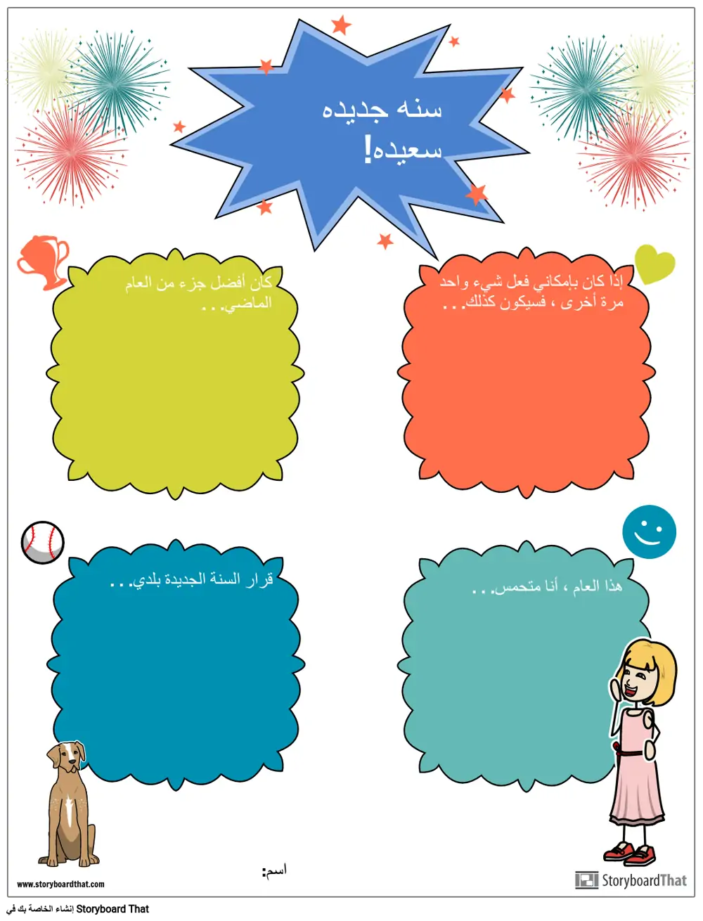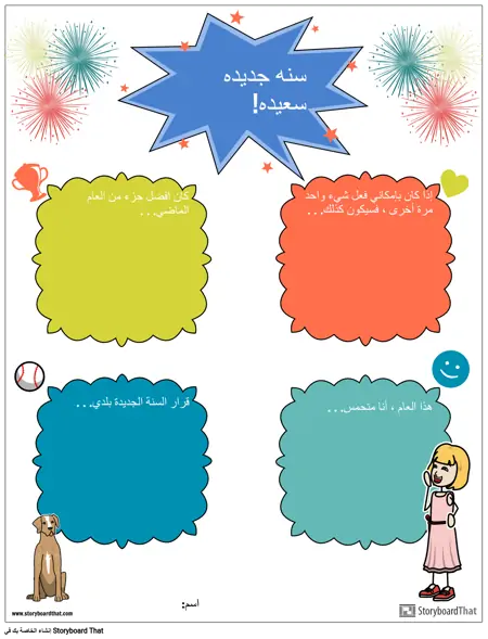 سينتهي الطلاب من بداية الجملة في كل مربع للتفكير في العام الماضي ولإنشاء أهداف للعام المقبل. بعد ذلك ، سوف يستبدلون الحرف والرموز بحرف وعناصر ورموز تعكسها.