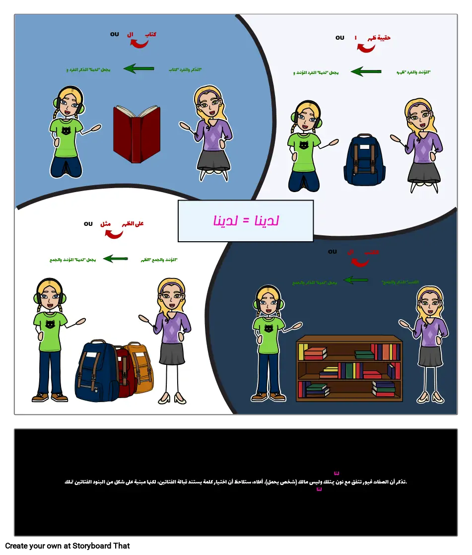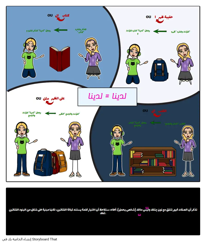 تذكر أن الصفات غيور تتفق مع نون يمتلك وليس مالك (شخص يحمل). أعلاه، ستلاحظ أن اختيار كلمة يستند قبالة الفتاتين، لكنها مبنية على شكل من البنود الفتاتين تملك.
