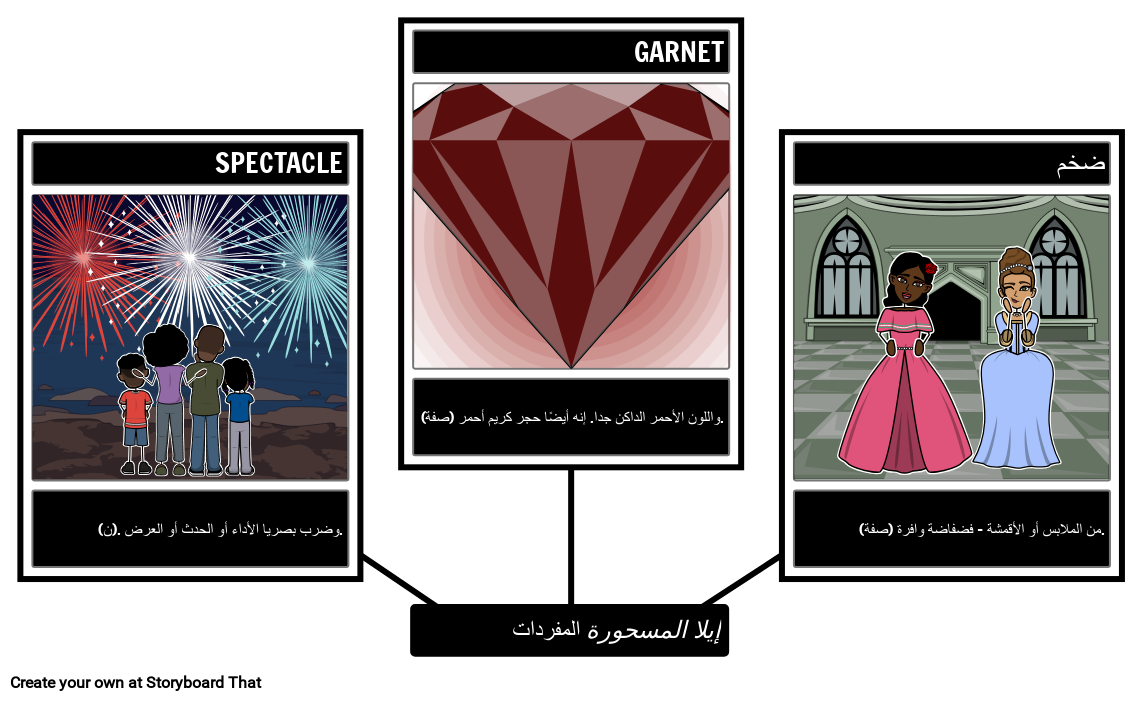 قم بإنشاء خريطة عنكبوتية تحدد وتوضح المفردات الجديدة من Ella Enchanted بواسطة Gail Carson Levine.